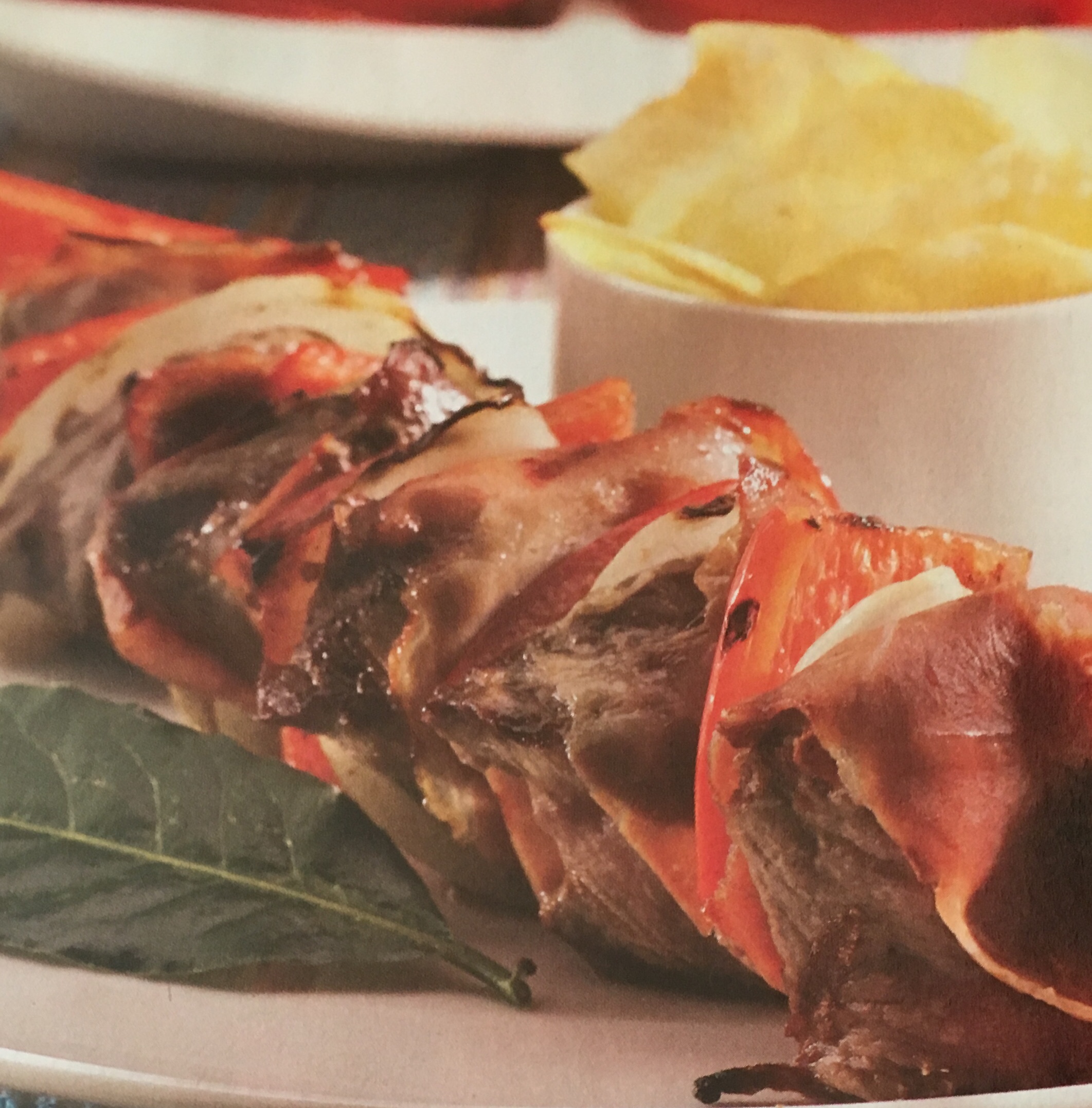 - Enrole o presunto em cada quadrado de carne